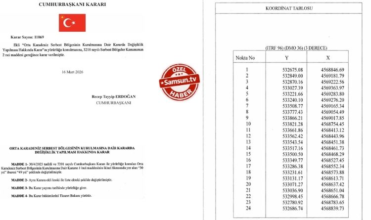 Samsun’da uzun süredir gündemde olan Orta Karadeniz Serbest Bölgesi projesine ilişkin önemli detaylar ortaya çıktı. Projenin sınırlarını belirleyen koordinat tabloları ve kadastro analizleri, serbest bölgenin Tekkeköy ilçesinde Samsun Limanı ve Organize Sanayi Bölgesi hattında planlandığını gösteriyor.