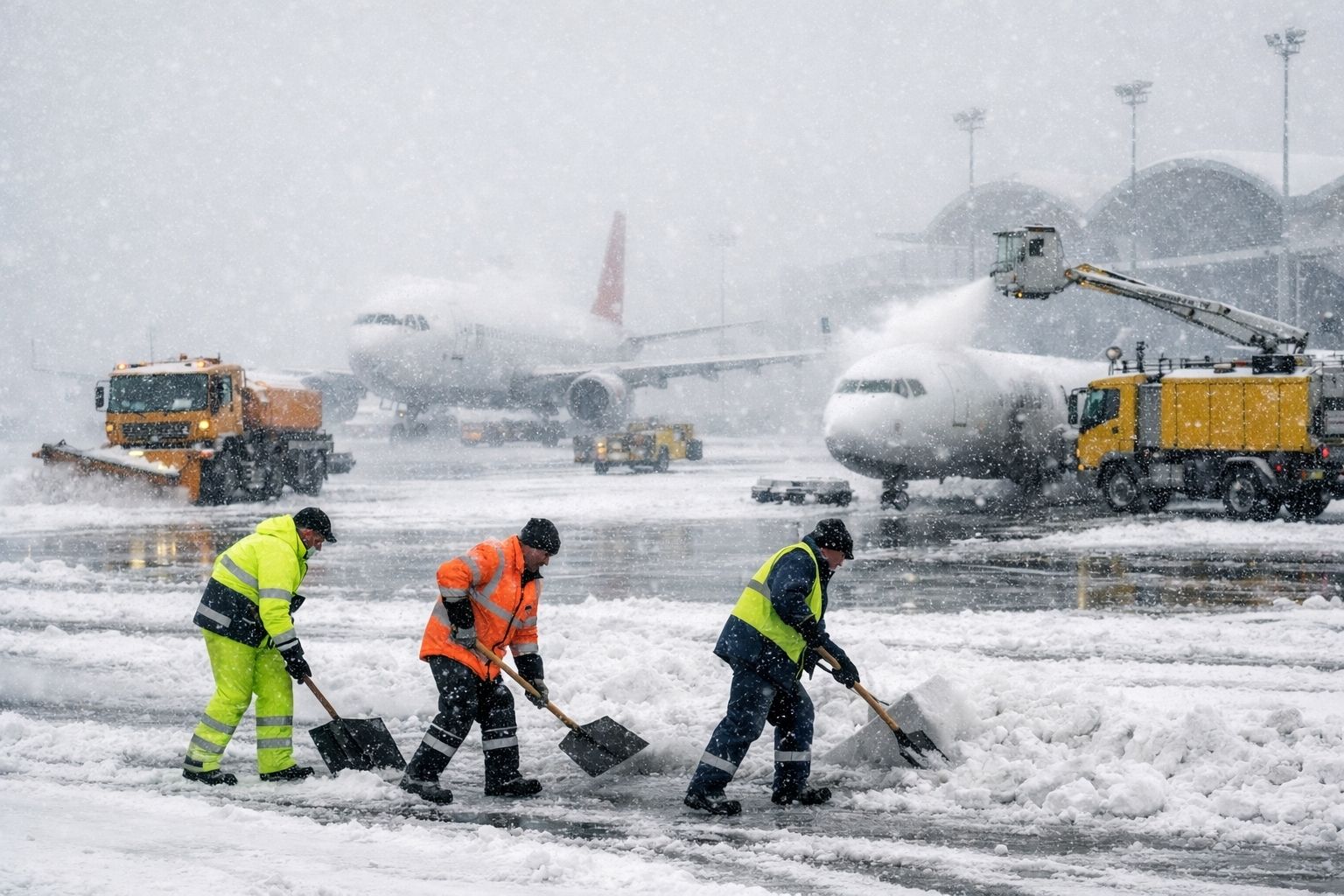 Uçuş güvenliğinin sağlanması için havalimanı meydan otoritesi HEAŞ, kar yağışına karşı geniş çaplı bir operasyon yürütüyor. Yaklaşık 3 milyon metrekarelik alanda;